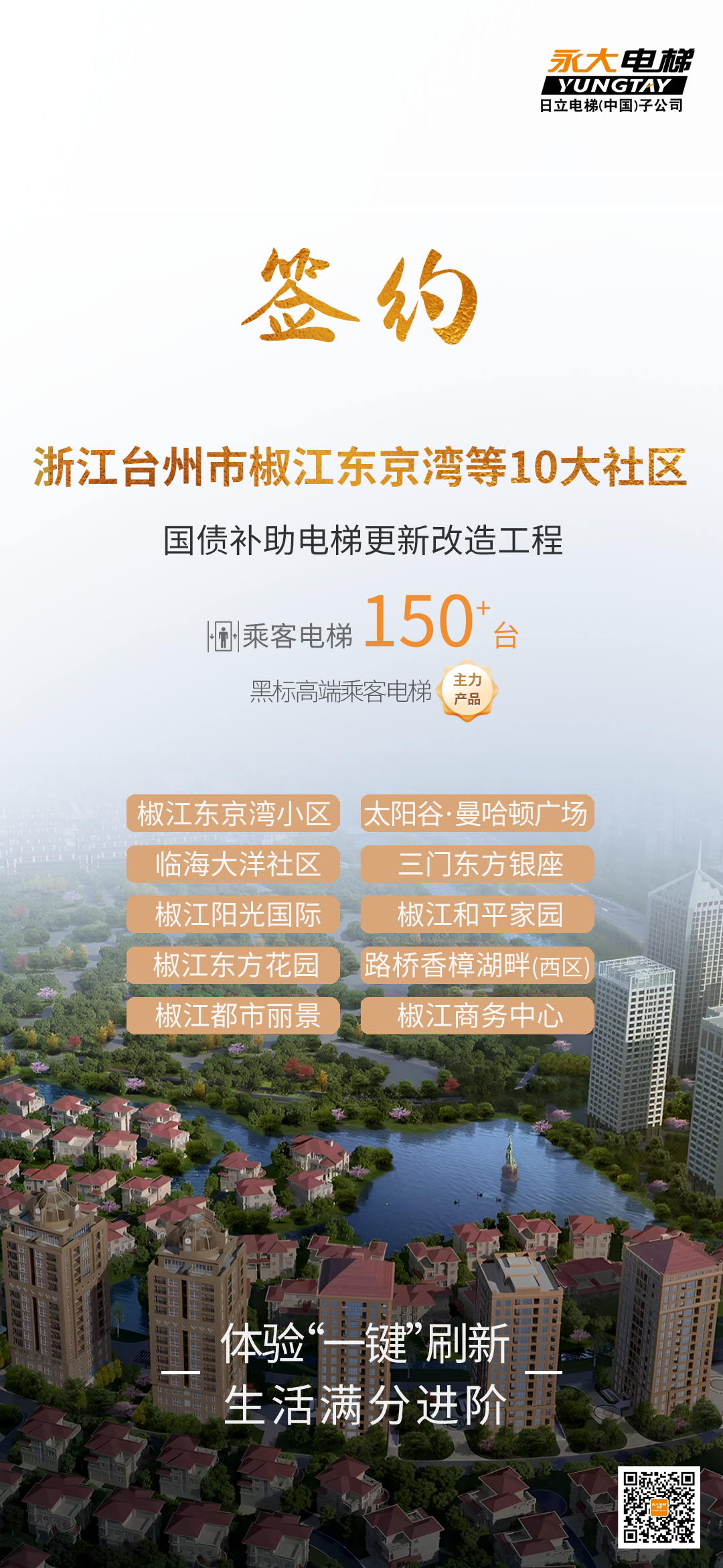 150+臺聯(lián)動煥新梯!永大電梯更新改造,助力建設宜居臺州